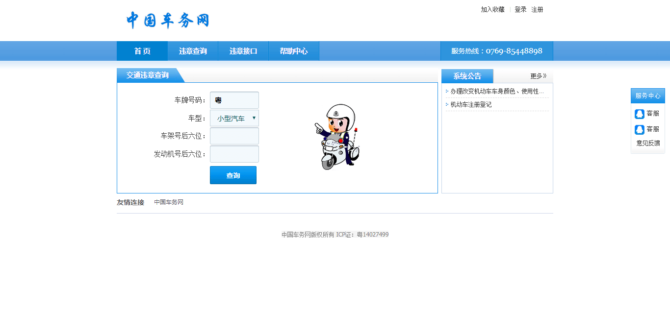 违章查询与代办系统,包含全国违章查询与代办、现场单与电子眼违章代办、多渠道接口接入、违章查询接口外接、公告、文章管理、客服咨询、帮助中心、意见反馈。