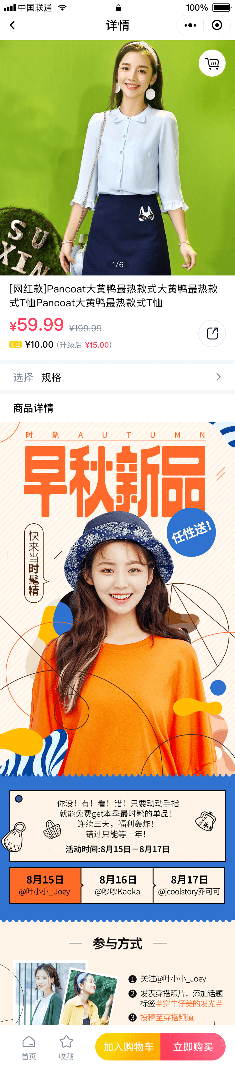 - 商品海报: 每个商品均可生成商品海报,商品海报带有小程序码,分享给朋友或朋友圈,朋友购买后,即会产生购买关联链条,商品发现中多个商品亦会生成针对该主题的商品海报素材。