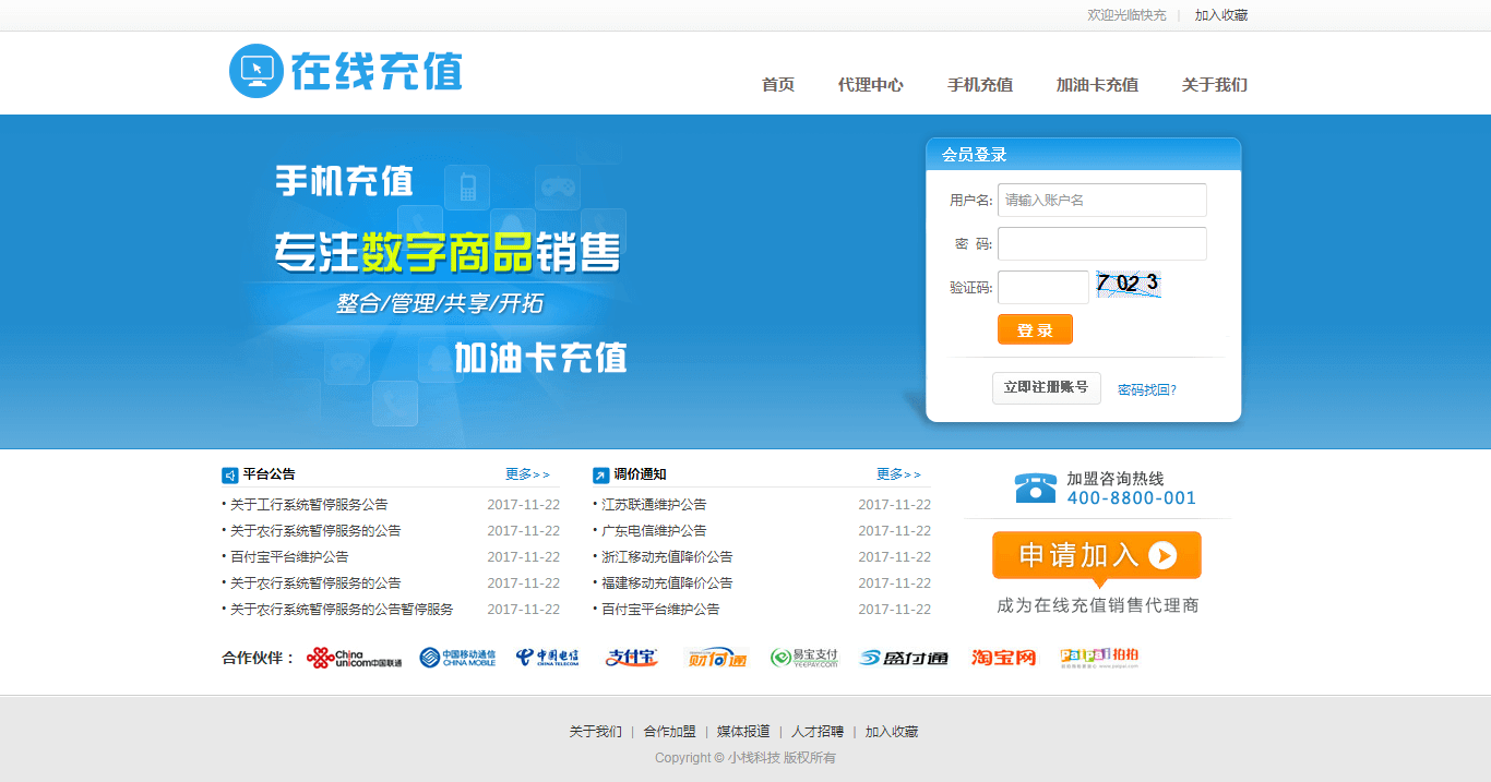 手机话费与加油卡充值系统,包含手机移动充值、手机电信充值、手机联通充值、中石油加油卡充值、中石化加油卡充值,支持代理充值,代理商通过代理折扣云计算利润, 支持批量充值,手机充值支持多接口模式可设定每个省份或每个城市走最优惠的充值接口,在线下单,在线充值,快速到账。