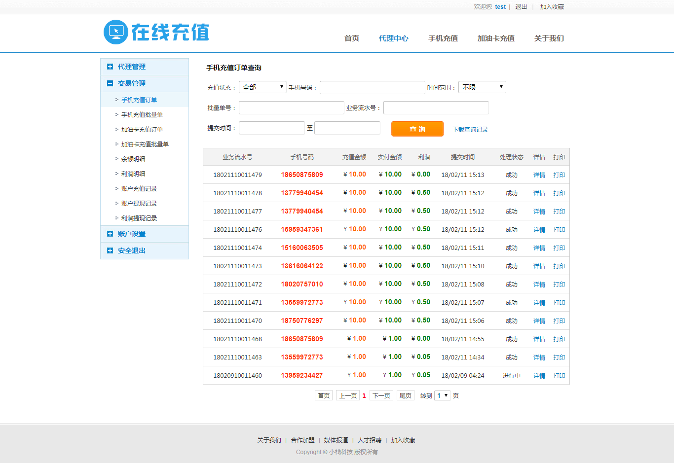 - 手机订单管理:手机充值订单成功、失败、补充