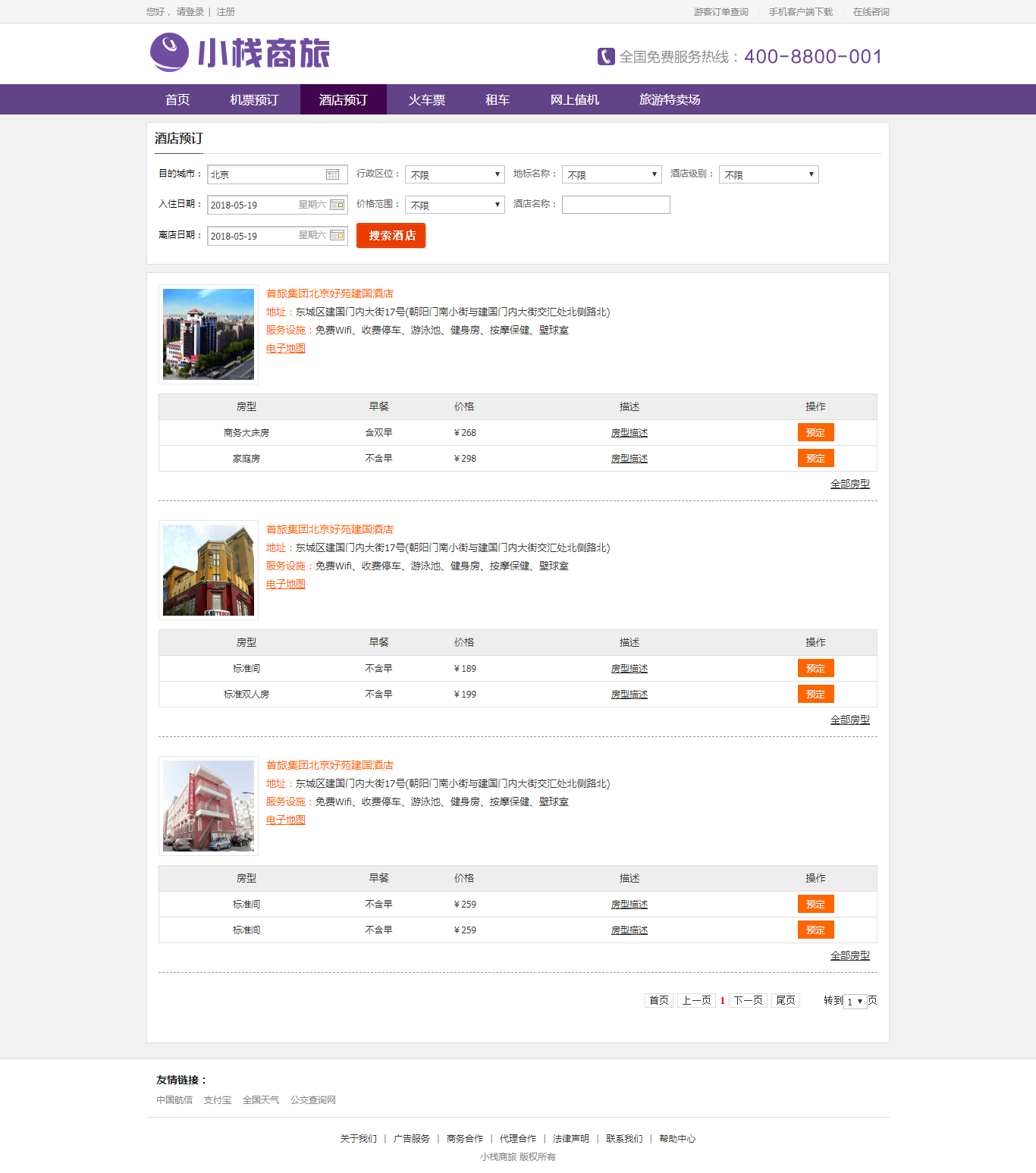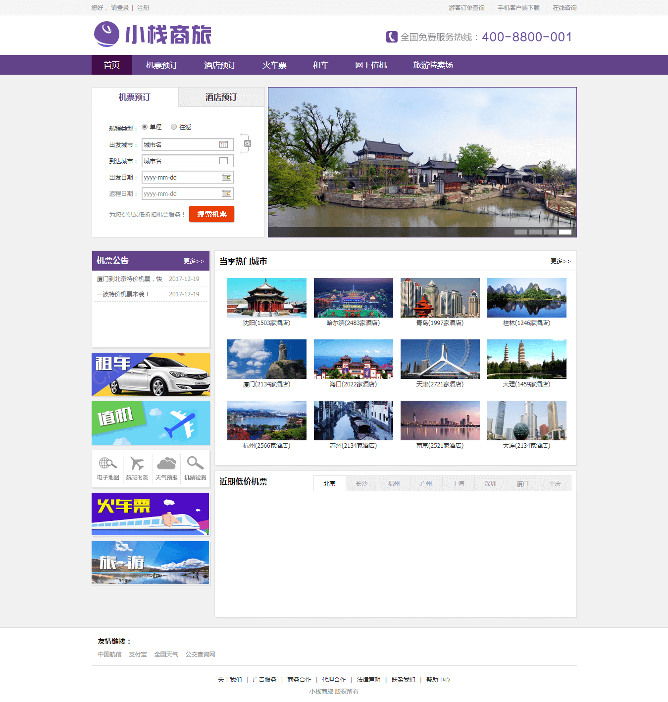 - 酒店预订: 酒店查询与预订、在线下单、在线支付、当季热门城市、我的订单、订单管理