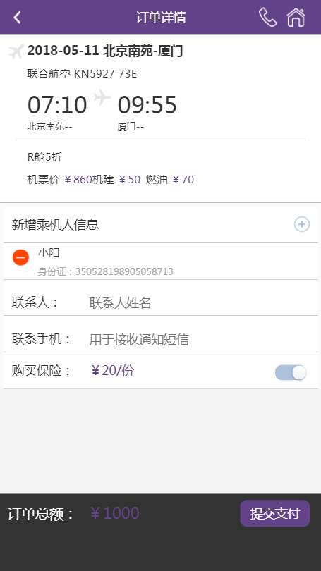 - 备注: 机票与酒店接口数据接演示接口数据,正式环境时可切换为正式接口数据